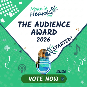 Make your voice heard as loud as you can! Share it on social media and with the press to get people voting for you! The most popular podcast will win the 2026 Podcast Audience Award, and the most popular song will receive the 2026 Song Audience Award.